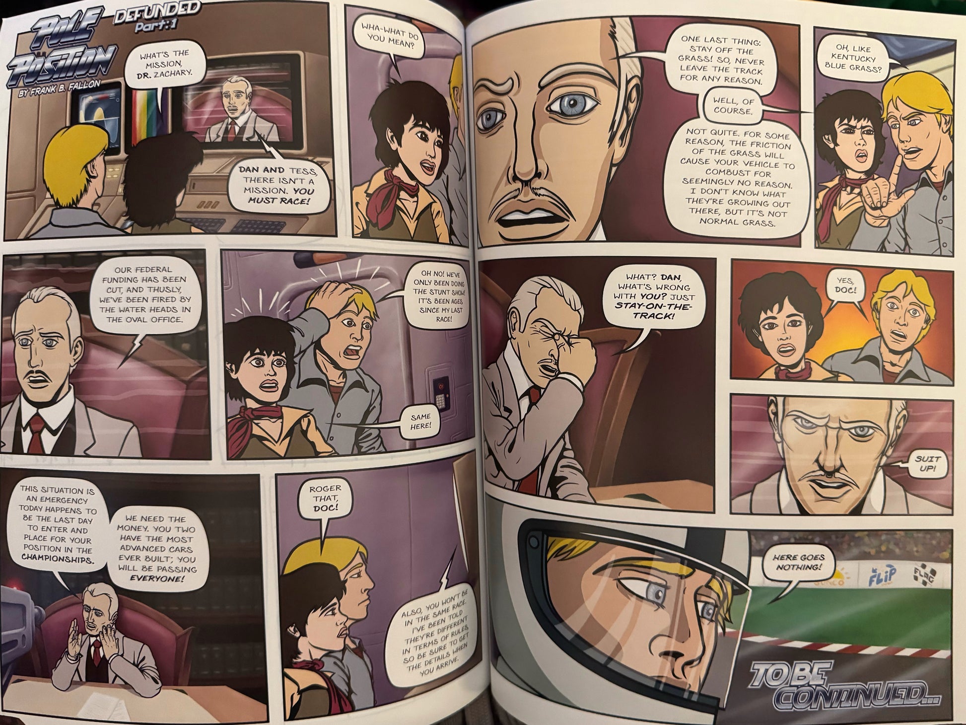 A Cartoon/Video Game Fanzine mashing up your favorite retro Saturday cartoons/pop culture/ and vide games. Comics, articles and game reviews. Produced by HandPlantPress, featuring a variety of artists and writers, including Frank B. Fallon’s parody of the Pole Position cartoon!
