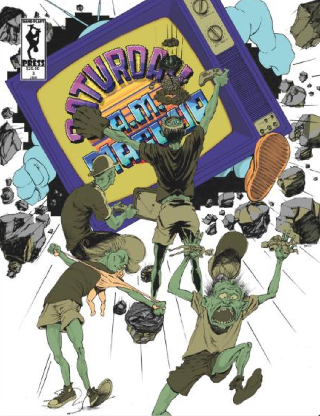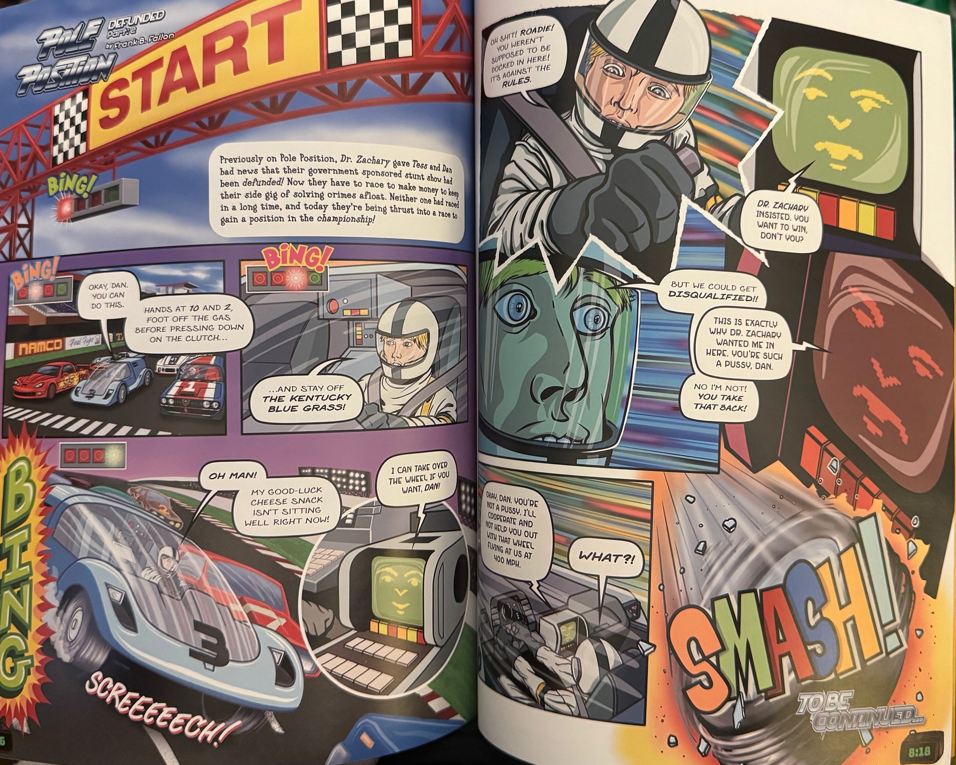 A Cartoon/Video Game Fanzine mashing up your favorite retro Saturday cartoons/pop culture/ and vide games. Comics, articles and game reviews. Produced by HandPlantPress, featuring a variety of artists and writers, featuring Frank B. Fallon’s parody of the Pole Position Saturday morning cartoon!
